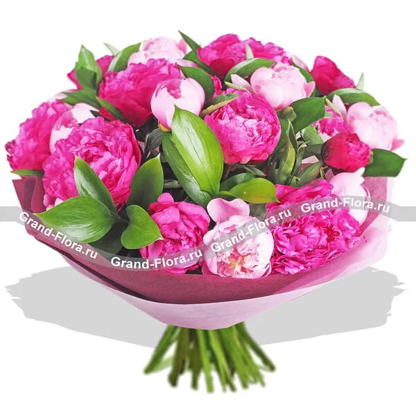 Люкс: пионы малиновые - 7 шт., декоративная зелень, розово-малиновый фетр.